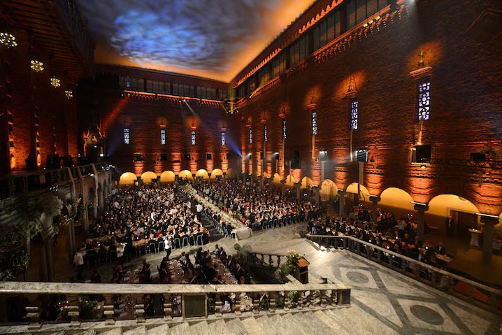 בכל שנה בשבוע הראשון של אוקטובר מוכרזים הזוכים החדשים, והטקס מתקיים בהיכל העירייה של שטוקהולם ב־10 בדצמבר – אירוע נוצץ המשודר בשידור חי לעולם כולו.