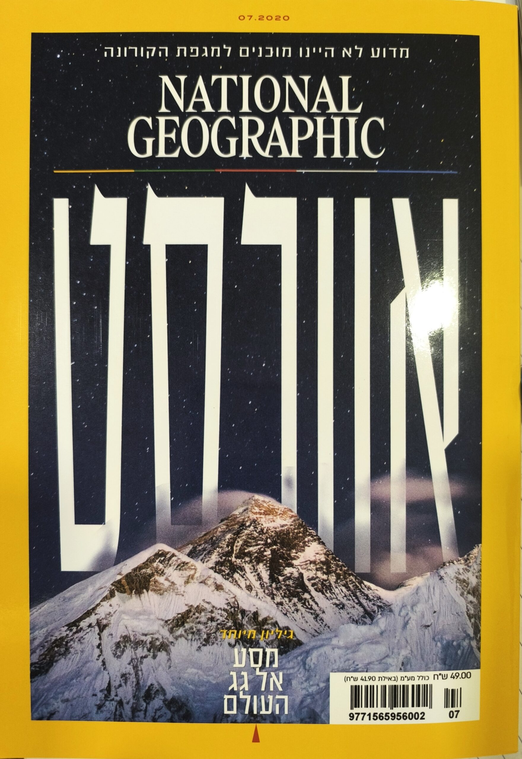 גיליון יולי 2020 של נשיונל ג'יאוגרפיק כולל את כתבת השער "תעלומה באוורסט", הבוחנת את סיפור היעלמותם של מטפסי ההרים ג'ורג' מאלורי וסנדי אירווין ב-1924, והשאלה האם היו הראשונים שהגיעו לפסגת ההר הגבוה בעולם. הגיליון מכסה גם נושאים מגוונים נוספים, כמו דילמות סביבתיות עכשוויות, ניתוחי שטח יוצאי דופן, ותיעוד אנושי וטבעי ברחבי העולם