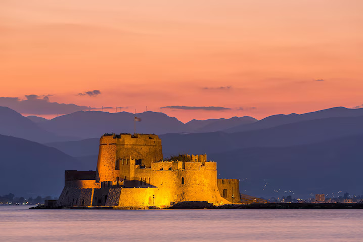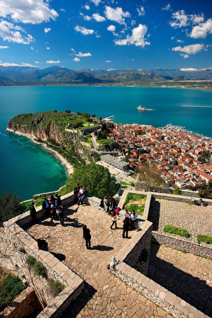 בין אם תבחרו לטפס יותר מ־900 מדרגות ובין אם לעלות למצודה ברכב, ממתינים לכם בסוף העלייה נופים פנורמיים עוצרי נשימה של מפרץ ארגוליס ושל גגות הטרה קוטה של נאופליו. טיילו לאורך חומות המצודה העתיקות הקרויות על שם גיבורים יוונים, ובקרו בתא שבו נכלא קולוקוטרוניס. מומלץ להגיע לטירה בשעות הבוקר המוקדמות לפני בוא ההמונים, כדי ליהנות מסיור שקט באוויר הקריר.